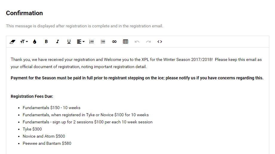 Add a message that is displayed after the registration is complete. This message will also be emailed as well.