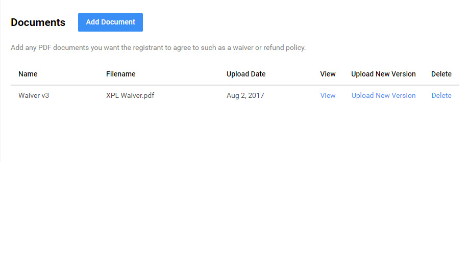 Add any PDF documents you want the registrant to agree to such as a waiver or refund policy.